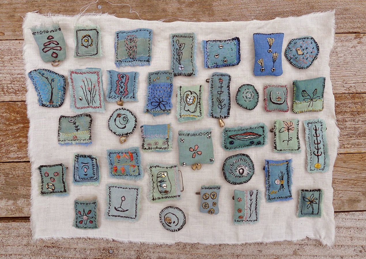 This class is an exploration in inspiration, design, and stitching technique. Amulets are a way to incorporate favorite charms, beads, buttons, fabric scraps, and stitch patterns. You can also tuck words inside the amulet – a little mantra, a memory to hold close, an ode to a person you love, a reminder. The process is a balance of creative (shape and decoration) and mechanical/technical (assembly) and we will delve into the overlap between the two. The technical aspects can be very creative as there are many ways to finish each piece. We will discuss intentional misalignment and asymmetry, the use of negative space, color choices, stitch possibilities, and ways to personalize an amulet. Each participant will receive a Blue Amulet DIY kit and will need to collect a few items from home (see below).