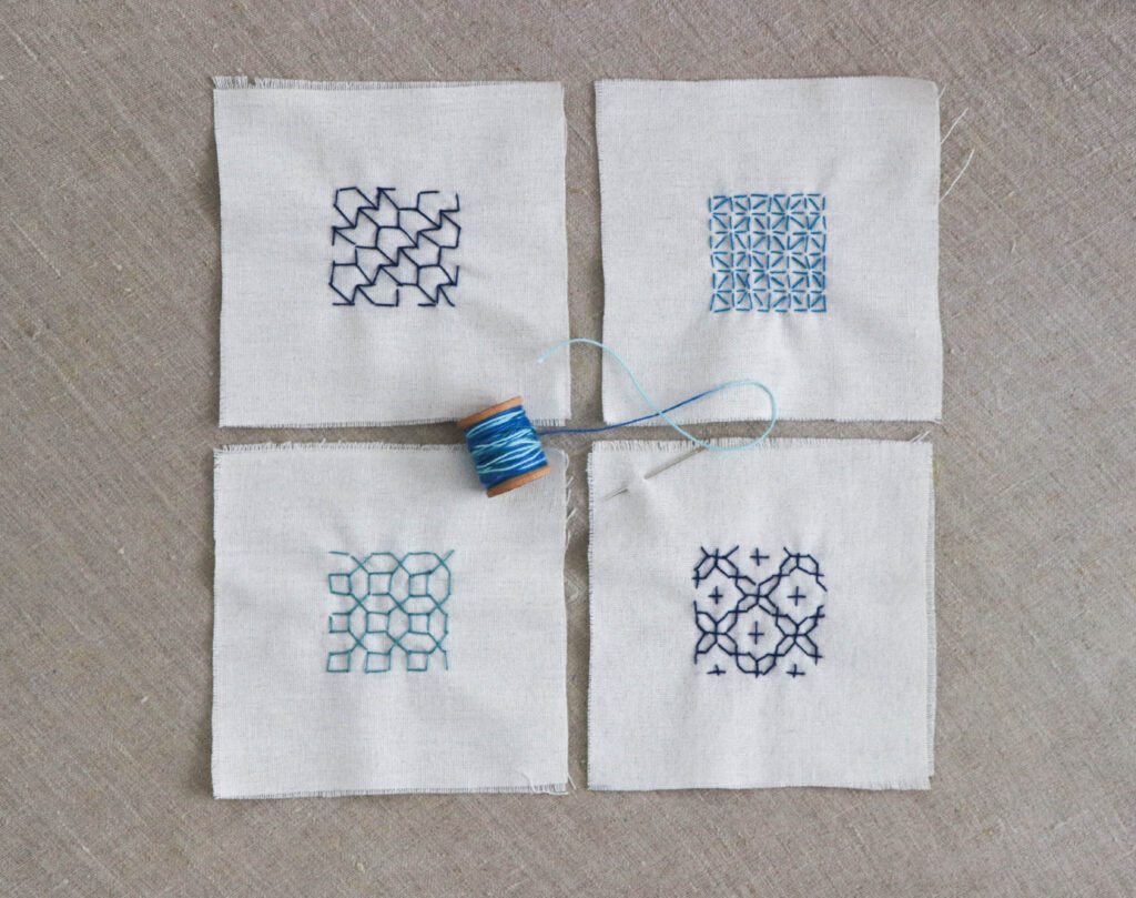 Sashiko, the much beloved Japanese embroidery, includes a variety of techniques formed with running stitches. In this class, Sanae Ishida will cover four Sashiko techniques and demonstrate the “Hitomezashi” or “one-stitch pattern” style. Though seemingly complex, Hitomezashi is quite simple and can become a meditative and calming practice with time. Sashiko and Hitomezashi embroidery are both rooted in mending. Once added to your toolbox of stitching skills, these techniques can add beauty to sewing projects of all kind – from clothing to household objects.
