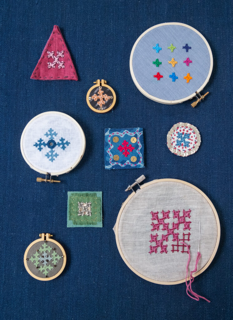 Traditionally practiced on cotton and silk in vibrant colors, these crosses can be used to create borders, geometric designs and more intricately depicting flora and fauna of the region.