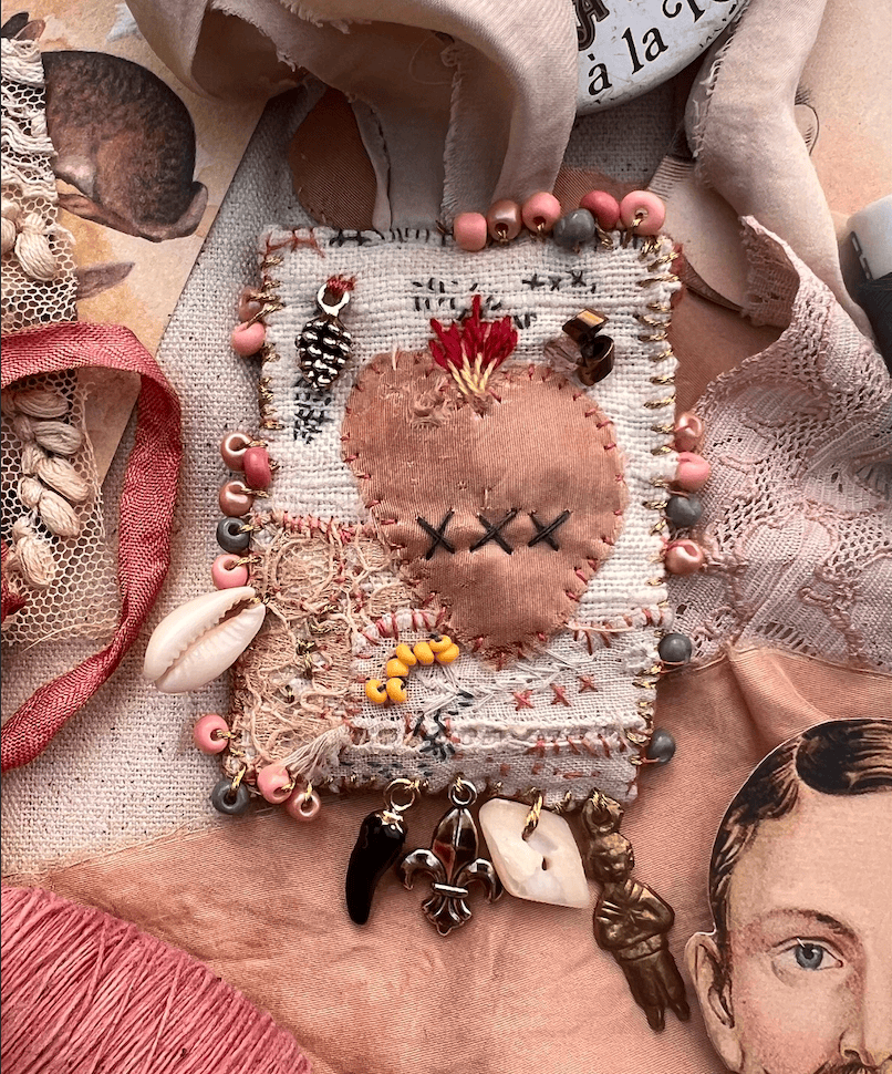 By the end of the workshop, each participant will leave with a completed talisman, a tangible result of their creative journey, and the experience of having stitched in a supportive, relaxed environment under the guidance of the artist himself.