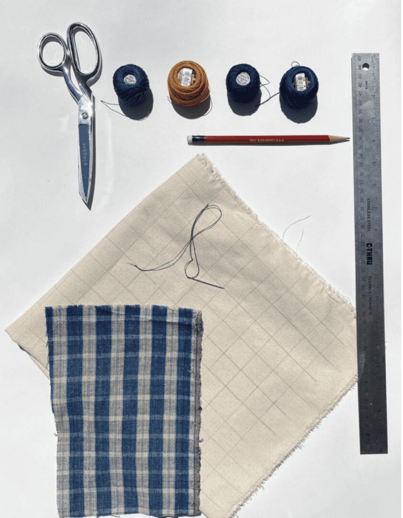 Before each class, please draw a grid of two inch squares onto your 22” x 32” fabric using your fabric marker and your ruler. Instructions will be included in the workshop welcome email. Reference image to right.