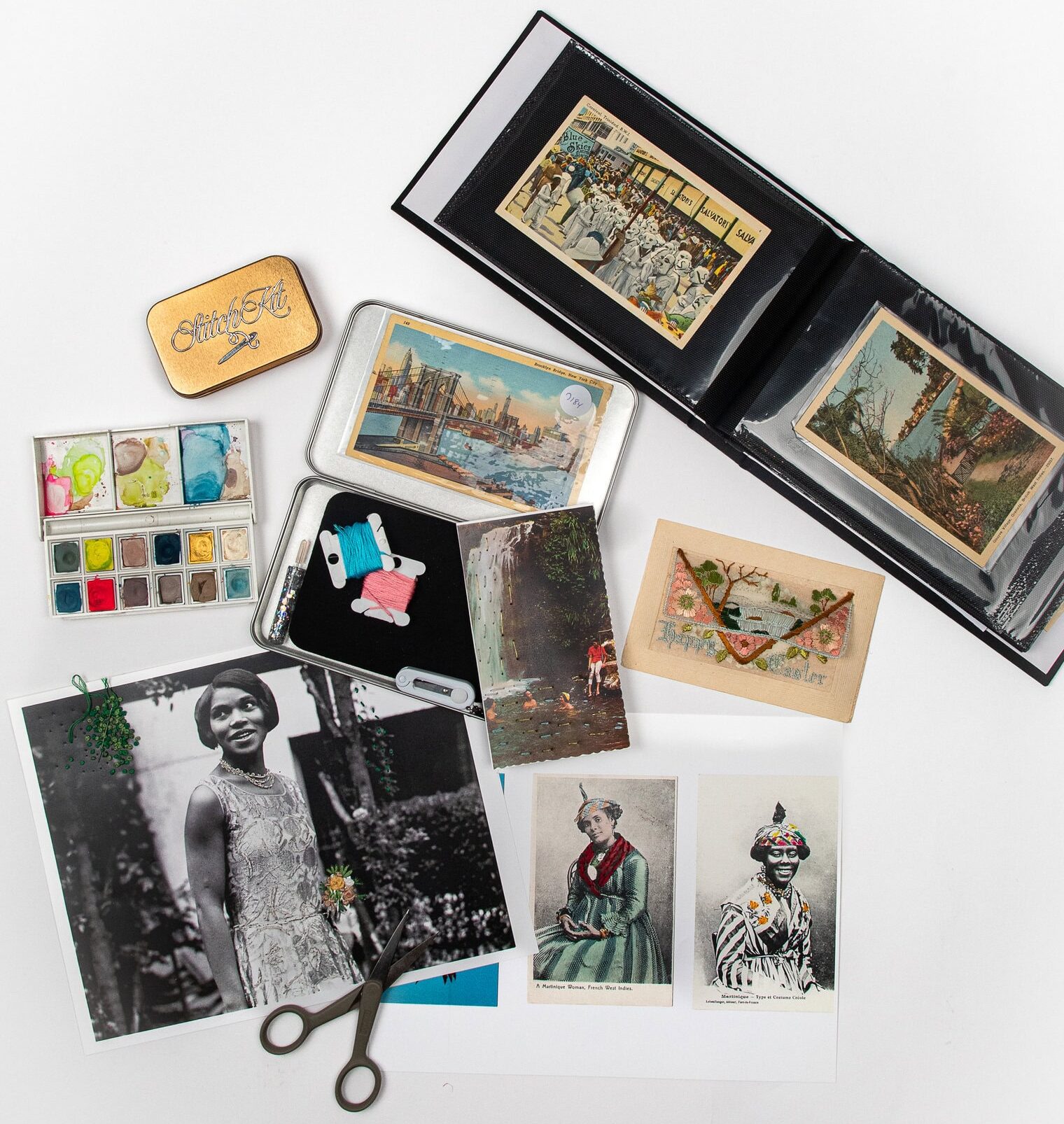 Narrative Stitching is a two-day immersive workshop that explores embroidery on paper as a tool for storytelling and personal expression. Participants will stitch directly into photographs, postcards, and paper ephemera, transforming meaningful imagery into tactile mixed-media artworks.