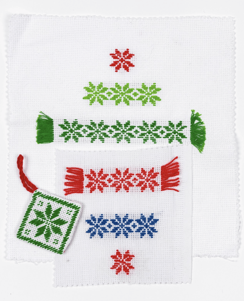 - Aida No. 10 or jute is ideal for beginners, but any plain fabric that makes the warp and weft visible will work