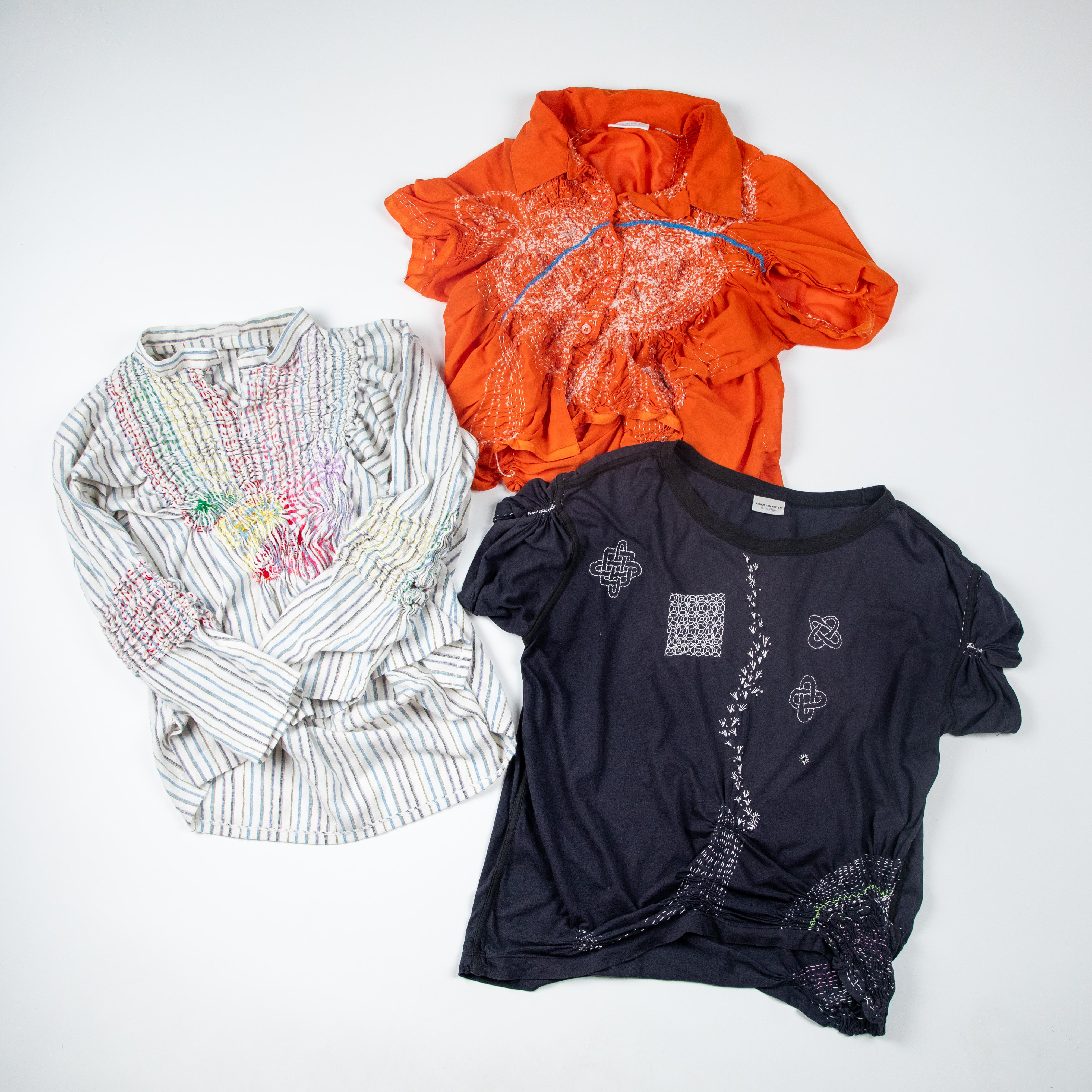 As with many styles and modes of visible mending, punk smocking also draws inspiration from Bengali/Bangladeshi kantha, and from bold and extreme art stitchers, including Maggie Gill, Judith Scott, Arthur Bispo do Rosario, and Dunya Hirschter Koprolčec. An important influence on this technique, which alters form as much as it embellishes surface, is stitchwork from the Nui Project at Shobu Gakuen, Kagoshima, Japan, where neurodivergent residents embroider freely and intensively, taking a year or more to complete a piece. Indeed, as participants in this workshop will discover, the contentment fostered by this addictive, unplanned fusion of self, cloth, needle and thread is a profound form of menditation.